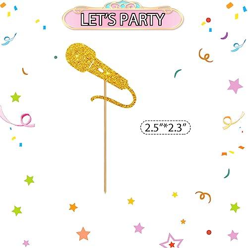 gold glitter microphone cupcake toppers