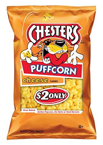 Chesters cheese flavored puff corn snacks are puffy, bite-sized morsels with a crunchy corn taste. Theyre oven baked, and unlike popcorn, there are no hulls or hard seeds. Available in a convenient big bag, theyre perfect for sharing some delicious fun at home.
