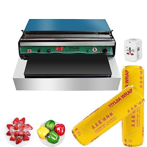- HUMANIZED DESIGN: The edges of the film wrapping machine are finely polished and will not hurt hands, ensure user security. This food packaging machine is suitable for film width within 17.7(45cm), it is an ideal equipment for supermarkets, fruit shops, food factories, restaurants, etc.