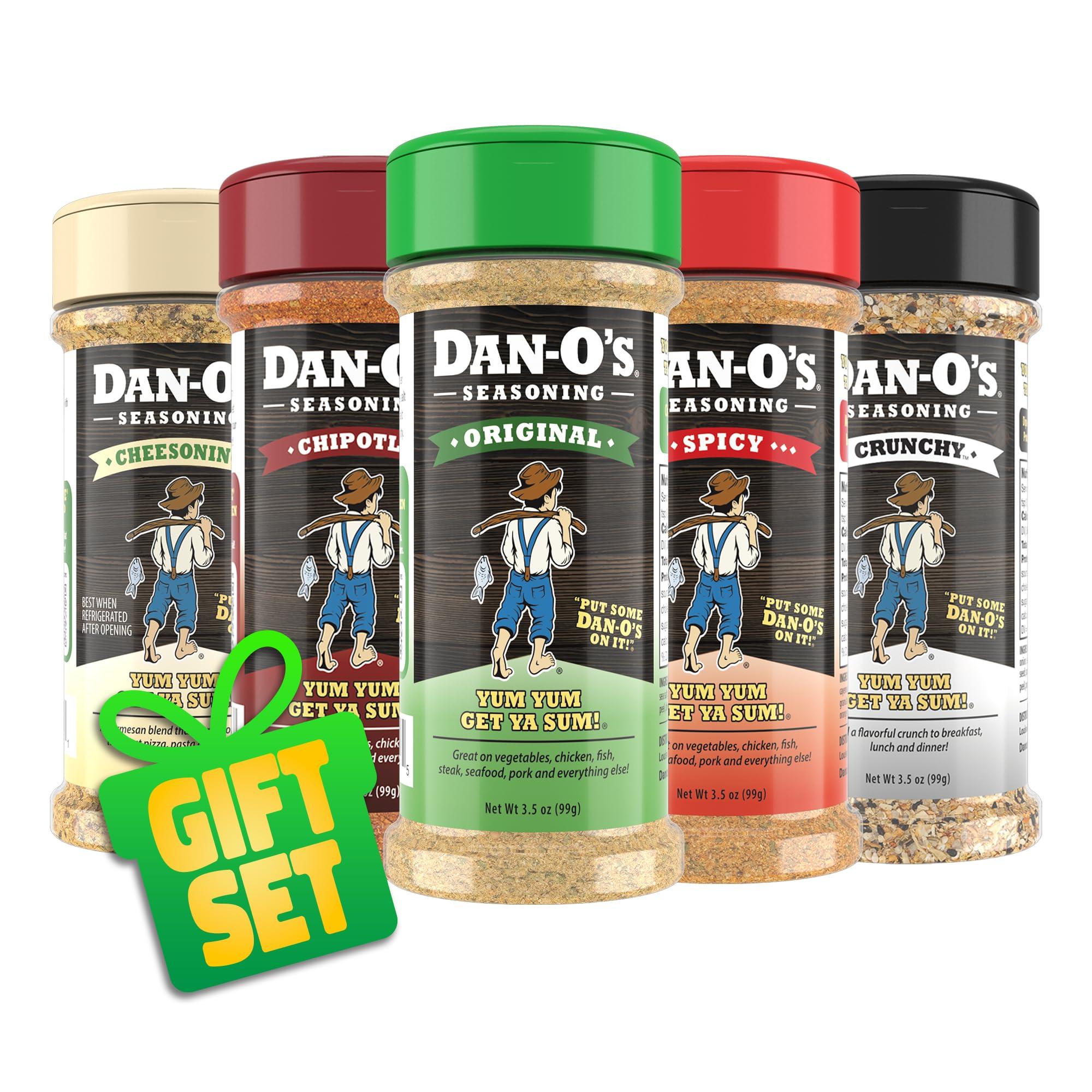 Get all the flavors of Dan-Os in one convenient pack! Get ready for a blast of that Yum Yum Get Ya Sum with the Dan-tastic 5! This bundle includes Dan-Os Original, Spicy, Chipotle, Crunchy, and Cheesoning for all your cooking needs.