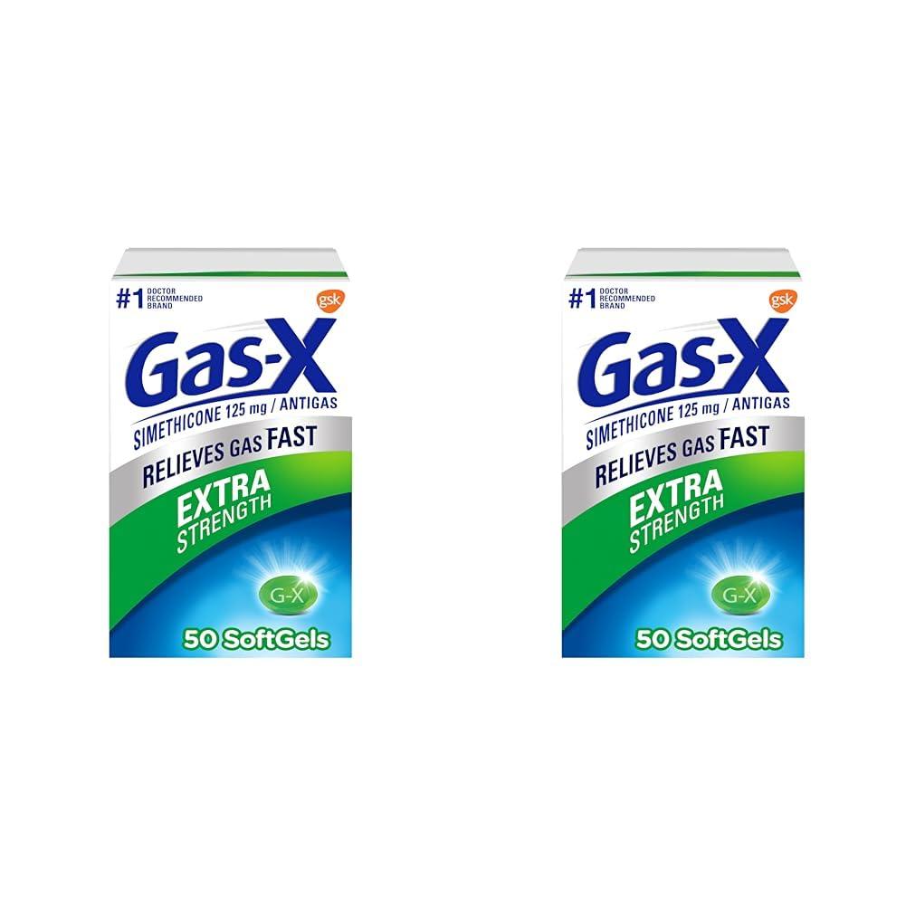 - One 50 count package of Gas-X Extra Strength Gas Relief Softgels with Simethicone 125 mg; number 1 Anti-Gas Relief Brand