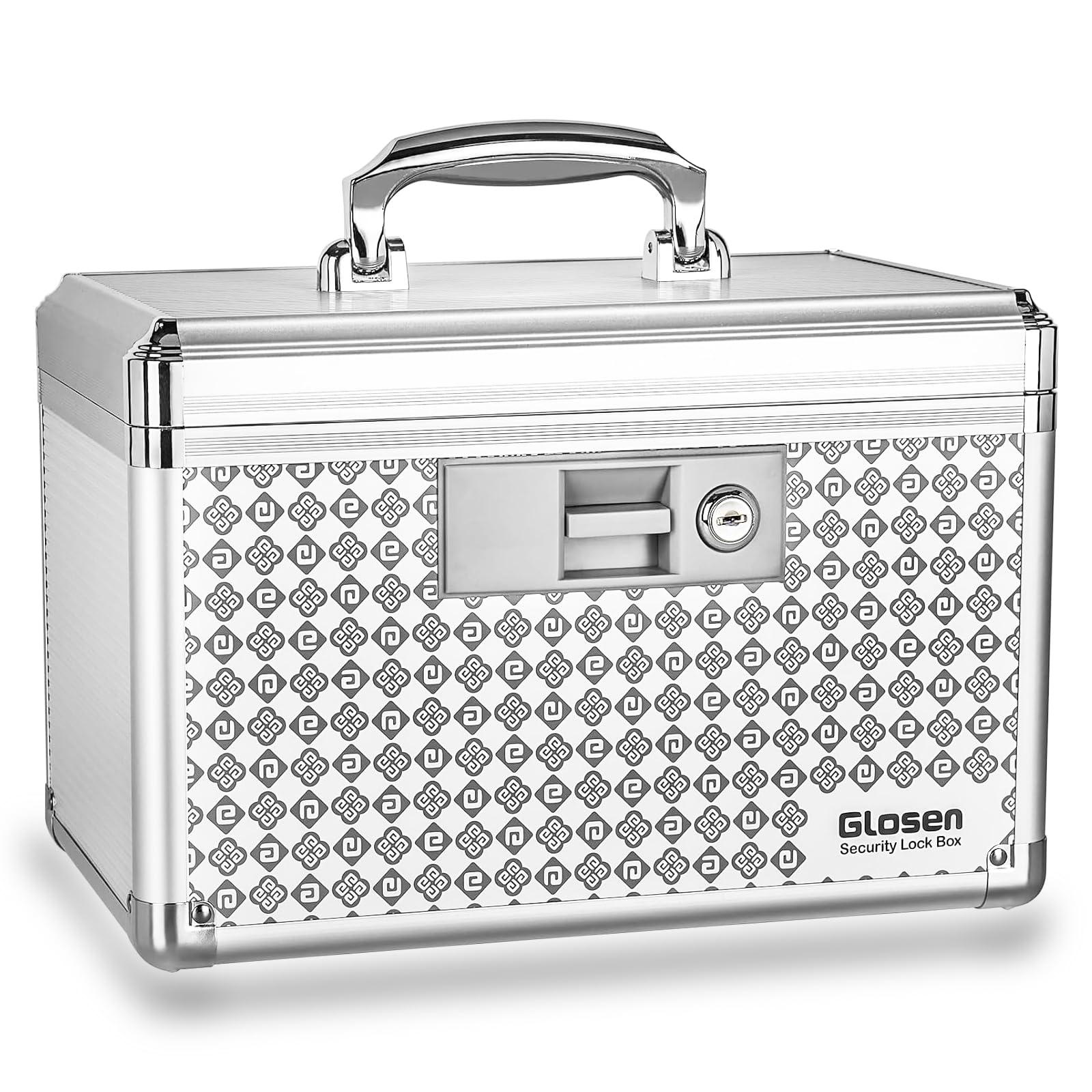 - Glosen Medicine Lock Box materials:the lock box is Made of aluminum alloy + MDF with keys to keep your medications safe, good corrosion resistance, sturdy body and better metal feel