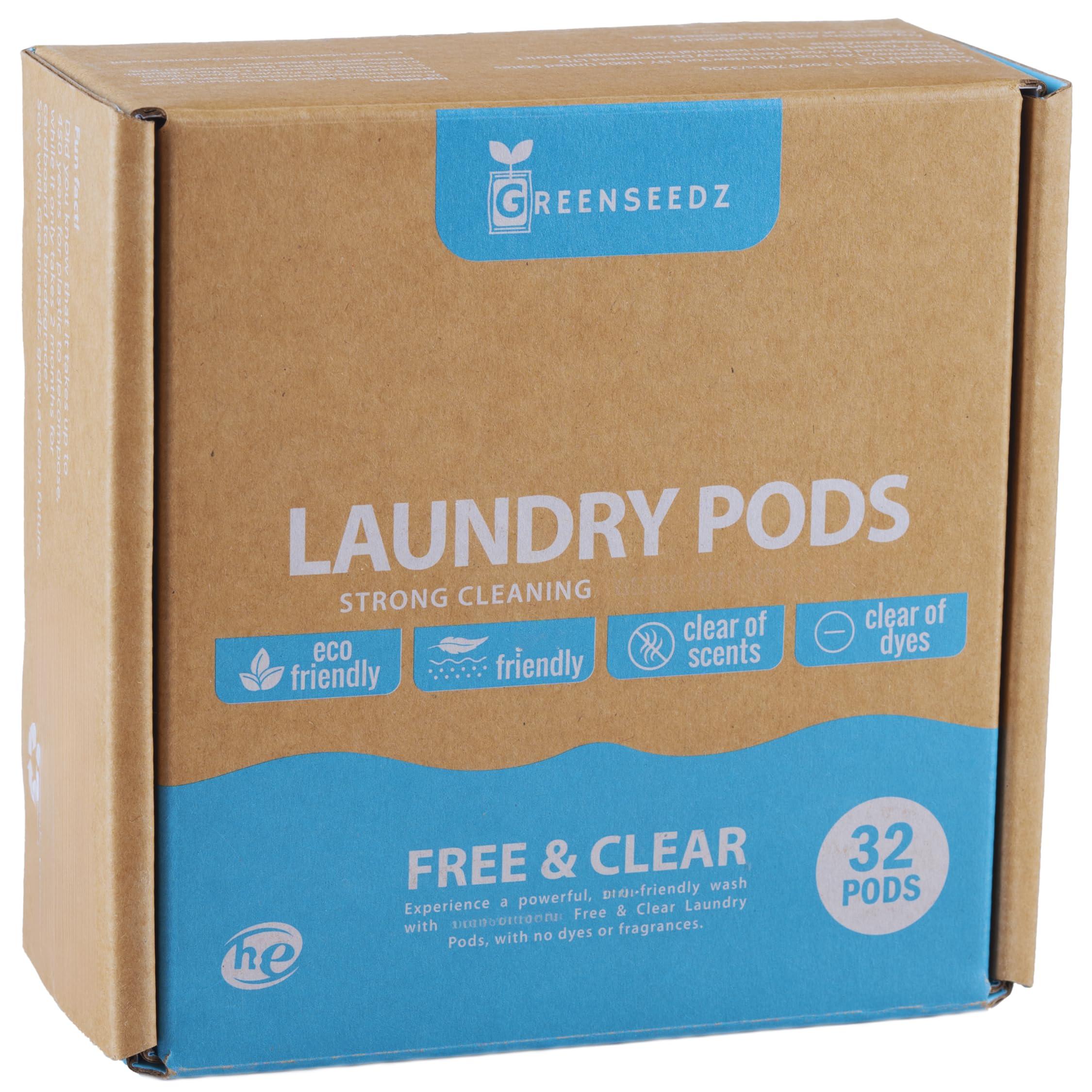 - 32 Free & Clear laundry pods: Perfectly suited for individuals with sensitivities, our eco-friendly laundry detergent pods offer a deep, thorough clean without relying on artificial fragrances, ensuring clothes are fresh and comfortable for everyone. Our laundry detergents are 100% safe.