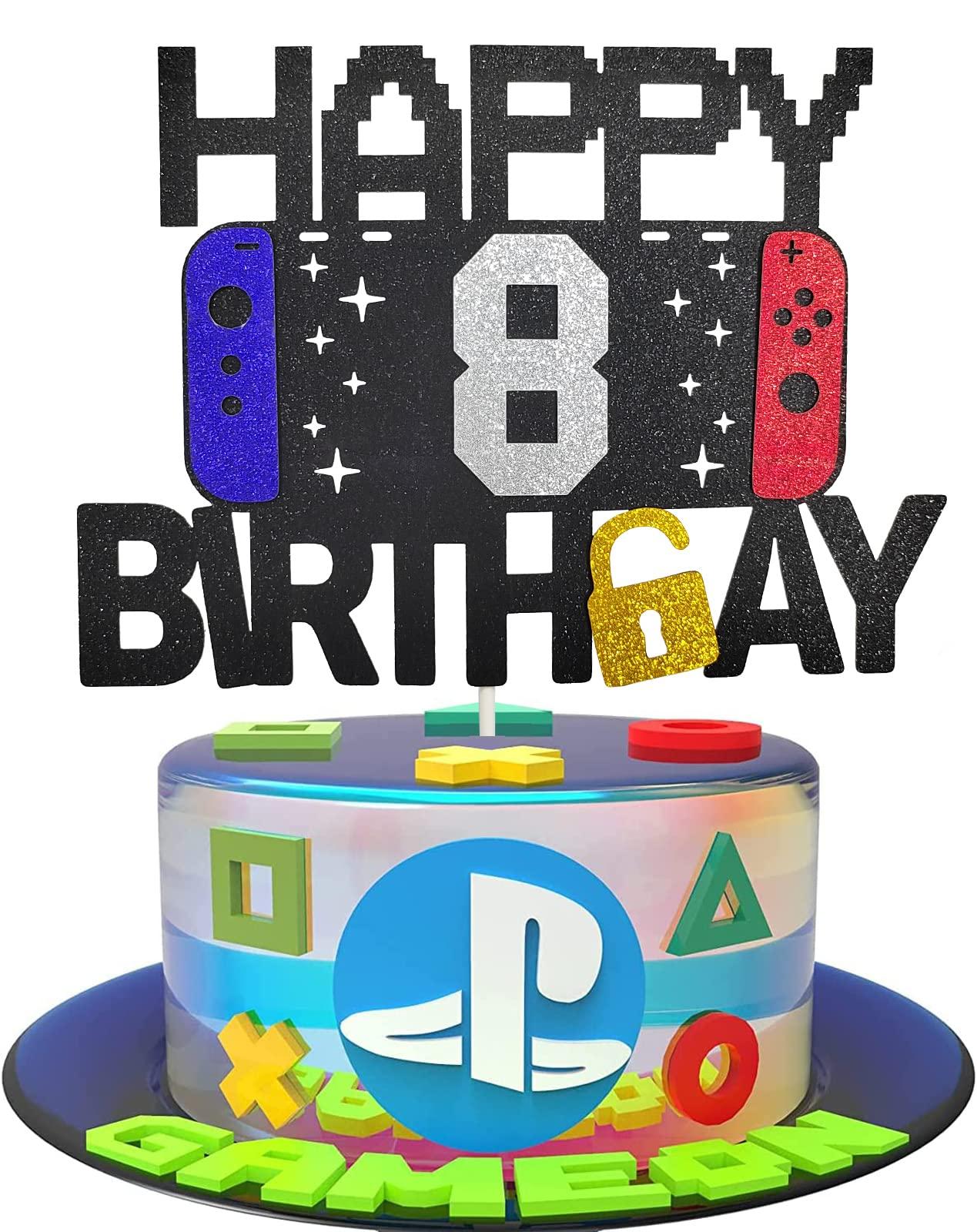 - Size: This video game 8th birthday cake topper is approx 6.6" wide and 4.7" high (height not include the stick), suit for 6 to 10 inch cakes.