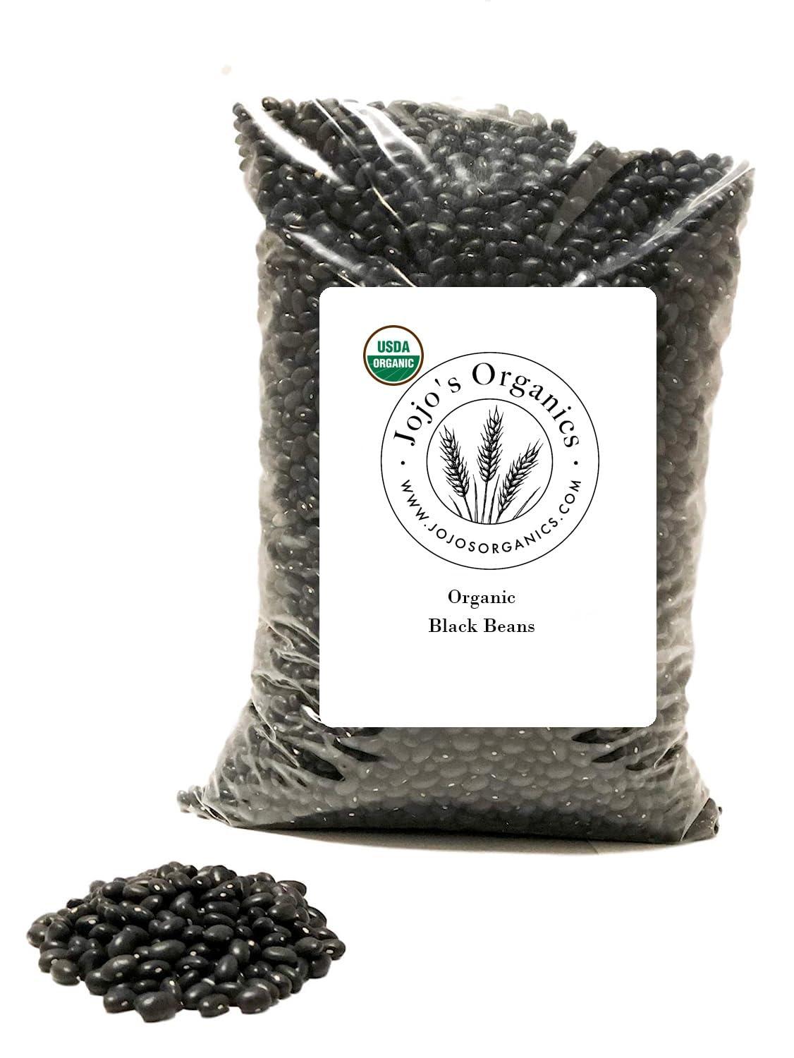 Jojo\'s Organics Black Beans Certified Organic Non-GMO | Raw Dried Bulk Legumes 5 lbs Great for Bean Soup, High in Fiber and Protein