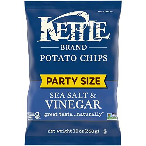 Kettle Brand Salt & Vinegar kettle chips start with a search for undisputed potato excellence. Determined not to disrupt the flawless, spudsy goodness, these beauties are kettle cooked, skins on, one batch at a time. Delight your taste buds with our take on this flavorful favorite with a balance of sea salt with a hint of tongue-puckering vinegar. And of course, these chips come complete with the satisfying crunch you love. When you open a bag of our Kettle Brand potato chips, you know you're getting incredible kettle chips made with authentic recipes by real people. From their farms to our kitchens and then to your home, the time and attention every Kettle Brand worker puts into their products is care you can trust. All that, plus Kettle Brand chips deliver a delicious snack that's non-GMO Project Verified, and Certified Gluten-Free. This 13-ounce party size bag is great for parties, tailgates, and other gatherings. Kettle Brand potato chips. Extra in a good way.