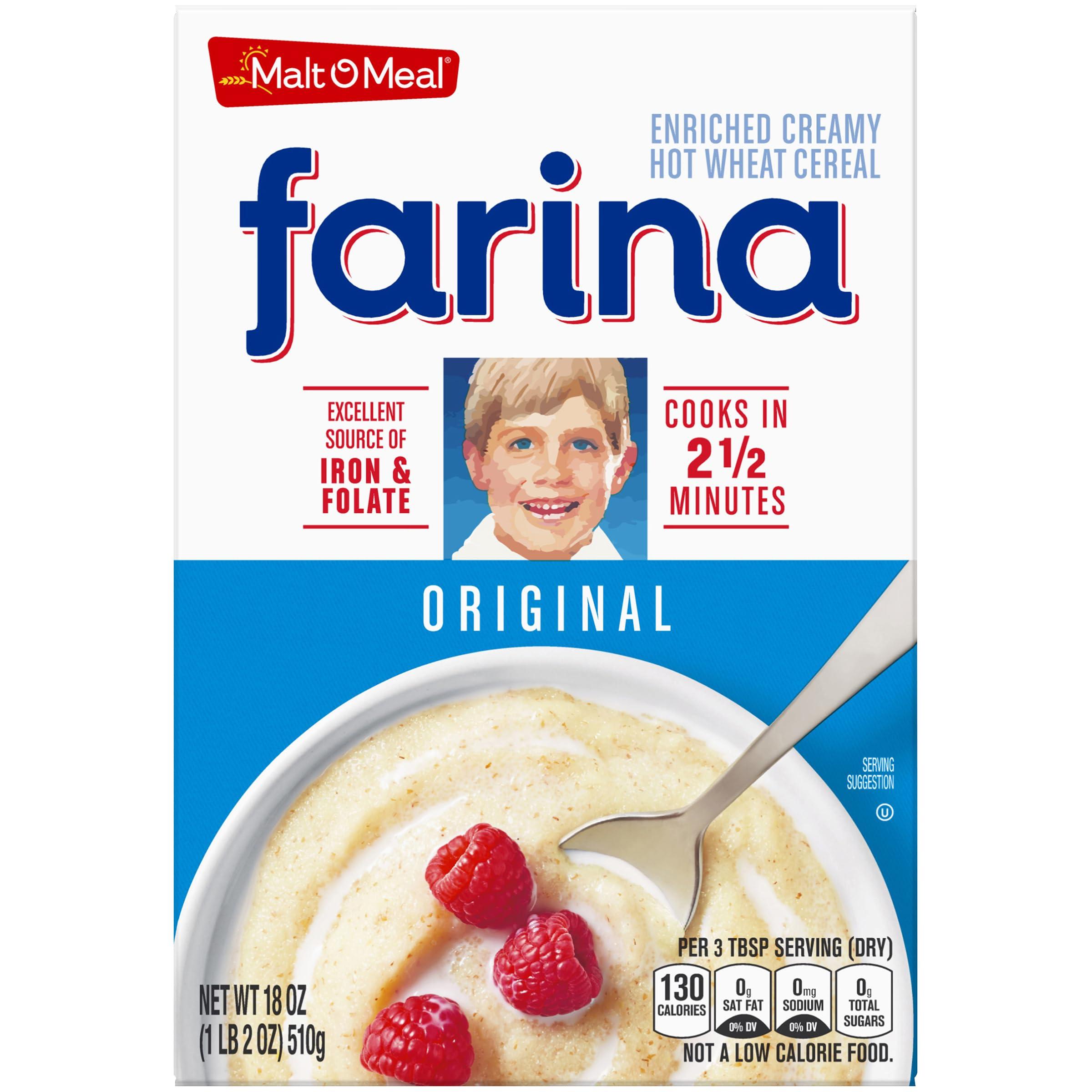 - Malt-O-Meal Farina enriched creamy hot wheat cereal is an excellent source of Iron.