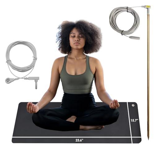 MOKIKUBA Grounding Mat with Grounding Rod Set,Earthing Sleep Yoga Mat Connect to Grounding Pin with 40Ft Wire,Improve Lower Inflammation or Autoimmune Disease ,Sleep Assist,Exercise Fitness