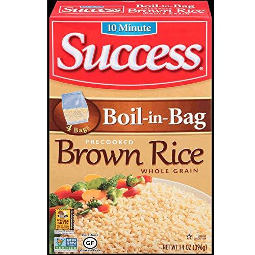 Preparation: Stove - Pour about 4 cups (1 quart) of water into medium saucepan and submerge 1 bag of Success Brown Rice. Bring water to a boil and boil uncovered 8 to 10 minutes. Remove bag with fork and drain. Cut open bag and empty cooked rice into a serving dish. Fluff with fork and add butter and salt, if desired. To prepare multiple bags: Pour 3-quarts of water into large saucepan and submerge 2 to 4 bags of Success Brown Rice. Bring water to a boil, and boil uncovered for 8 to 10 minutes. Follow Step 2 to drain and serve rice. | Microwave - In a 2-quart microwave-safe dish, submerge 1 bag of Success Brown Rice in about 4 cups (1 quart) of water. Microwave on HIGH 10 minutes. Remove bag with fork and drain. Cut open bag and empty cooked rice into a serving dish. Fluff with a fork, and add butter and salt, if desired. Microwave ovens vary. Cooking times are approximate. We do not recommend using the microwave to cook multiple bags.