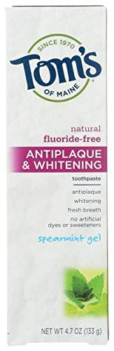 - FLUORIDE-FREE WHITENING: Tom's of Maine Fluoride-Free Antiplaque & Whitening toothpaste whitens teeth by removing surface stains.