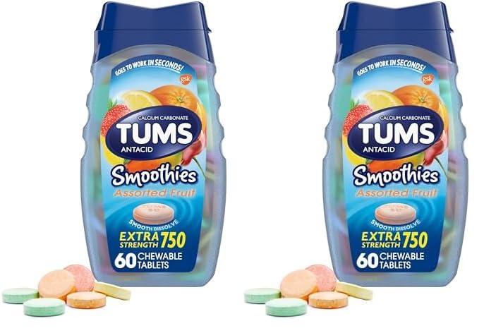 - Contents: 60 TUMS Smoothies Extra Strength Antacid Chewable Tablets for Heartburn Relief in assorted fruit flavors
