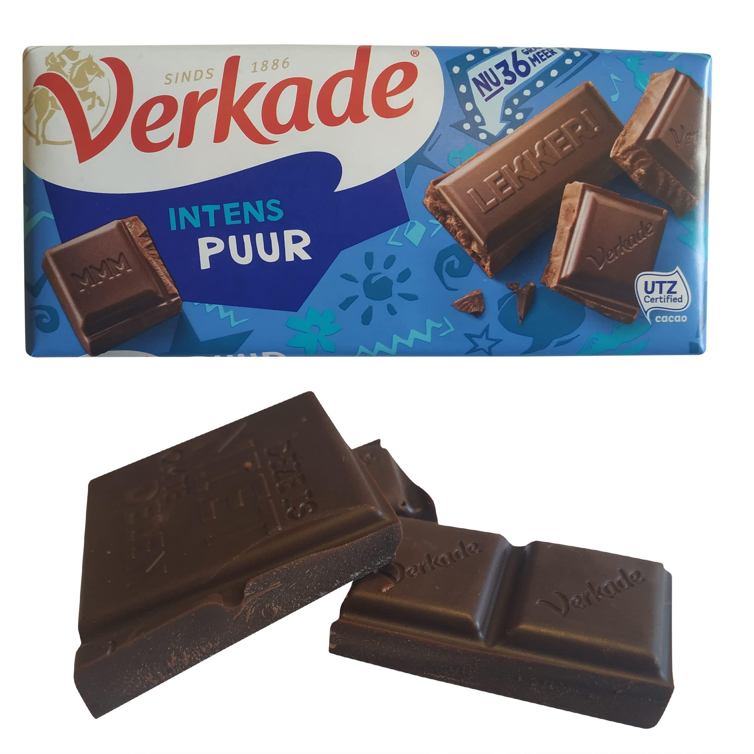 Verkade Chocolate Bar from Holland: delicious Verkade Dark Chocolate. Verkade Chocolate is Dutch Chocolate with a very intense flavor. These chocolate bars from Holland are imported from Europe. Dutch Verkade Chocolate contains at least 31% cocoa. Try thise Verkade dark chocolate bar now!