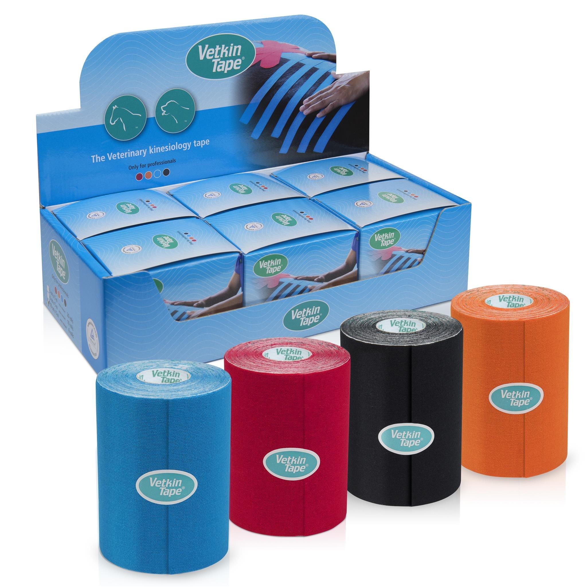 - SPECIALLY DESIGNED FOR ANIMALS: VetkinTape kinesiology tape is available in a variety of different tapes in all kinds of colors and sizes, making it suitable equine and canine therapy Whether used on small companion animals or larger horses, our kinesio tape roll be tailored to meet the unique needs of each animal and each situation.
